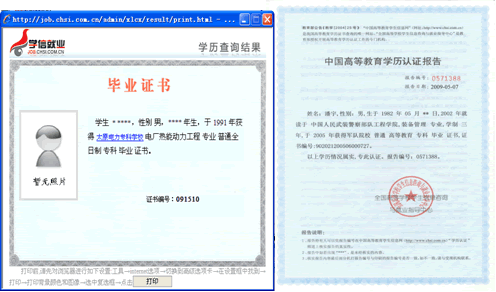 需要个人出具的中国高等教育学生信息网上本人毕业证书电子注册查询结果和教育部学历认证中心出具的学历认证报告的样式如下: