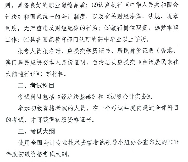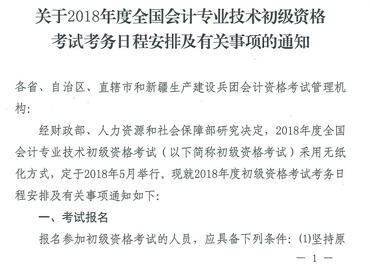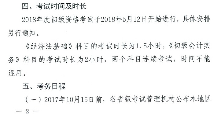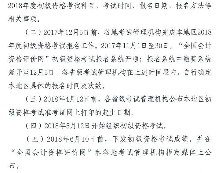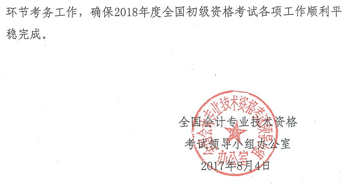 关于2018年度全国会计专业技术初级资格考试考务日程安排及有关事项的通知
